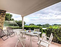 2 rom leilighet 40 m2, på bakkeplan. Praktiskt og komfortabelt møbler: stue, beliggenhet sør-øst med 2 senger (90 cm lengde 190 cm), TV (flatskjerms TV), el-radiator. Utgang til terrassen. 1 rom med, 1 dobbeltseng (140 cm, lengde 190 cm). Kjøkken (4 kokeplater, ovn, oppvaskmaskin, brødrister, vannkoker, elektrisk kaffemaskin, kombinert mikrobølgeovn). Dusj, sep. WC. Terrasse 20 m2. Terrassemøbler, liggestoler (3). Meget vakker utsikt av havet. Fasiliteter: vaskemaskin, strykejern, hårføner. Internett (trådløs LAN [WLAN], ekstra). Parkeringsplass plass nr 2. Vennligst merk: kjæledyr / hund tillatt 1 kjæledyr / hund tillatt. Røykvarsler. Residence. Det er en internettforbindelse.- Kjennetegn ved boligen