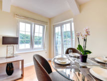 "Riversea", 6 rom hus. Luksuriøst og koseligt møbler: 1 dobblet rom med, 1 dobbeltseng. Dusj/WC. øverste etasje: 2 dobbelt rom, hvert rom med, 1 dobbeltseng. 1 litet rom med 1 seng. Bad/dusj/WC. øverste etasje: spisestue med, spisebord. Stue med, separat WC og satelit-TV. Kjøkken (4 kokeplater, stekeovn, oppvaskmaskin, mikrobølgeovn, frys). Oppvarming. Sitteplass i hagen, hage. Vakker utsikt av havet og elven. Fasiliteter: vaskemaskin, tørketrommel. Internett (trådløs LAN [WLAN], gratis). Vennligst merk: røykfritt hus. Bare TV EN. For din velvære, nyt boblebadet i ferier. Takket være vaskemaskinen finner du mindre klær å bære. Huset er også utstyrt med en tørketrommel.- fasiliteter