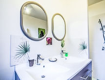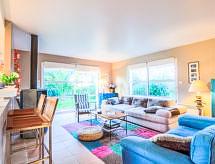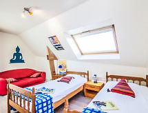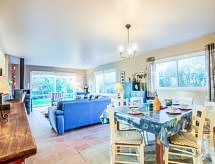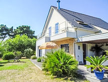 5 rom hus 140 m2 på 2 etasjer. Komfortabelt og vakkert møbler: stue/spisestue. Utgang til terrassen. 1 rom med, 1 dobbeltseng (160 cm, lengde 200 cm). Utgang til hagen. Åpent kjøkken (ovn, oppvaskmaskin, 4 keramiske kokeplater, mikrobølgeovn, frys, elektrisk kaffemaskin). Utgang til terrassen. Dusj, sep. WC, dobbel servant. øverste etasje: åpen liten salong med, TV (flatskjerms TV), DVD. 1 rom med, 1 dobbeltseng (140 cm, lengde 190 cm). 1 rom med 2 senger (90 cm lengde 190 cm). Utgang til balkongen. 1 rom med, 1 dobbeltseng (140 cm, lengde 190 cm). Utgang til balkongen. Bad, sep. WC. El-oppvarming. Terrasse 12 m2. Terrassemøbler, grill. Fasiliteter: vaskemaskin, tørketrommel, strykejern, høy barnestol. Internett (trådløs LAN [WLAN], gratis). Vennligst merk: røykvarsler. Det er en terrasse. Egnet for grilling. Huset er også utstyrt med parkeringsplass. Den har en DVD-spiller.- Aktiviteter i nærheten