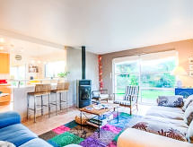 St Pierre Quiberon: Fin enmannsbolig "Roch Azur", med 2 etasjer. I området, 400 m fra sentrum, 450 m fra sjøen, 450 m fra stranden. Privat: velholdt hage (uten gjerde), parkering (for 2 biler) på tomten. Butikk, daglivarehandel 500 m, supermarked 4 km, kjøpesenter, restaurant 500 m.minutters gange til sentrum 8, sandstrand "Plage du Port d'Orange" 450 m, termalbad "Thalassothérapie de Quiberon" 7 km. Surfeskole 10 km, seileskole 3 km. Attraksjoner i nærheten: Presqu'ile de Quiberon et côte sauvage 3 km, Carnac 13 km, La Trinité Sur Mer 23 km, Auray 25 km, Vannes 42 km, Lorient 43 km. Oppdag seilruter i regionen som tar deg til de mest fantastiske naturområdene og landskapene. Surfer venner pass opp, den lokale kysten har ideelle forhold for surfing.Interior