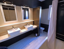 "Romani", 5 rom villa 180 m2 på 2 etasjer. Enkelt og koseligt møbler: stue/spisestue med, åpen peis og digital TV. 1 rom med 2 senger (90 cm lengde 190 cm). 1 rom med, 1 dobbeltseng (1 x 135 cm, lengde 190 cm), dusj/bidèt/WC. 1 rom med 2 senger (90 cm lengde 190 cm). Stort kjøkken (ovn, oppvaskmaskin, 3 keramiske kokeplater, mikrobølgeovn, frys, grill, elektrisk kaffemaskin). Bad/WC. øverste etasje: 1 rom med, 1 dobbeltseng (1 x 135 cm, lengde 190 cm), bad/bidèt/WC. Grill, liggestoler (6). Fasiliteter: strykejern, høy barnestol barneseng, hårføner. Internett (trådløs LAN [WLAN]). HUTTE002570 En oppvaskmaskin er tilgjengelig. Et privat basseng er tilgjengelig. Takket være vaskemaskinen finner du mindre klær å bære. Den har en Internett-tilkobling. For å forberede noe raskt selv, er en mikrobølgeovn klar. Den har en komfyr.- Aktiviteter i nærheten