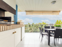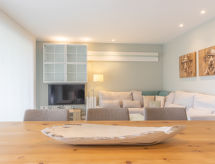 "ROYAL III", 3 rom leilighet 90 m2 i 3rd etasje. Komfortabelt og vakkert møbler: stue/spisestue med, digital TV. Utgang til balkongen. 1 rom med, 1 dobbeltseng (160 cm, lengde 190 cm), dusj/WC. Utgang til balkongen. 1 rom med 2 senger (90 cm lengde 190 cm). 1 rom med 1 seng (90 cm lengde 190 cm). Åpent kjøkken (stekeovn, oppvaskmaskin, 3 keramiske kokeplater, brødrister, vannkoker, mikrobølgeovn, elektrisk kaffemaskin). Bad/WC. Gassoppvarming, airconditioning. Stor terrasse. Terrassemøbler. Fasiliteter: vaskemaskin, strykejern, hårføner. Internett (trådløs LAN [WLAN]). Garasje plass nr 21-22. Vennligst merk: velegnet for familier. Røykfritt hus. HUTT06240638- Kjennetegn ved boligen