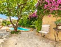 "Sa Teulera", 3 rom rekkehus 150 m2 på 2 etasjer. Passer for 6 voksne. Delvis, med skråtak, fullstendig renovert, vakkert og smakfullt møbler: stue med, TV og internasjonale TVkanaler. Spisestue med, spisebord og air-conditioning. Utgang til sitteplass i hagen, til badebassenget. Kjøkken (stekeovn, oppvaskmaskin, 3 keramiske kokeplater, mikrobølgeovn, frys, elektrisk kaffemaskin, kjøkkenøy) med spisebord. Utgang til sitteplass i hagen, til badebassenget. øverste etasje: 1 dobblet rom med, 1 dobbeltseng, TV, air-conditioning og varmluft oppvarming. 1 dobblet rom med, 2 dobbeltsenger, air-conditioning og varmluft oppvarming. Bad/dusj. Naturstengulv. Behagelig møblering i landlig stil. Stor sitteplass i hagen. Terrassemøbler, grill, liggestoler, sitteplass. Delvis av svømmebassenget, hagen, landskapet og området. Fasiliteter: vaskemaskin, strykejern, høy barnestol barneseng for barn opp til 2 år. Internett (trådløs LAN [WLAN], gratis). Ved hbrukt. Velegnet for familier. ETV12662 Huset er også utstyrt med veranda. Et privat basseng er tilgjengelig. Et trådløst LAN (trådløst lokalnettverk) er tilgjengelig. En tørketrommel er tilgjengelig.- Aktiviteter i nærheten