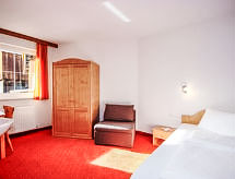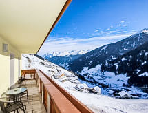 4 rom leilighet 110 m2 i 1st etasje. Romlig, komfortabelt og koseligt møbler: 1 stort dobblet rom med, dusj/WC. 2 dobbelt rom, hvert rom med, vaskeservant. 1 litet rom med 1 seng og dusj/WC. Stue/spisestue med, 1 sovesoffa, spisehjørne og satelit-TV (flatskjerms TV). Åpent kjøkken (ovn, oppvaskmaskin, 4 keramiske kokeplater, mikrobølgeovn, elektrisk kaffemaskin). Utgang til balkongen. Dusj, sep. WC. Stor balkong, beliggenhet mot sør. Balkongmøbler. Hærlig utsikt av fjellene og dalen. Fasiliteter: Internett (trådløs LAN [WLAN], gratis). Vennligst merk: røykfri bolig. Den har en parkeringsplass.- fasiliteter