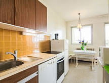 2 rom leilighet 55 m2 i 3rd etasje. Romlig, praktiskt møbler: stor stue/spisestue med, 1 dobbel sovesoffa (1 x 140 cm, lengde 190 cm), TV. Utgang til terrassen. 1 rom med, 1 dobbeltseng (1 x 140 cm, lengde 190 cm). Åpent kjøkken (4 kokeplater, stekeovn, mikrobølgeovn, frys, elektrisk kaffemaskin). Dusj, sep. WC. El-oppvarming. Stor terrasse 7 m2, beliggenhet mot sør og, østvendt beliggenhet. Terrassemøbler. Utsikt av byen. Fasiliteter: Internett (trådløs LAN [WLAN], ekstra). Vennligst merk: røykfri bolig. Røykvarsler. En ovn er tilgjengelig.- Kjennetegn ved boligen