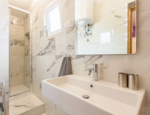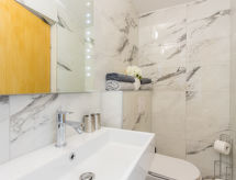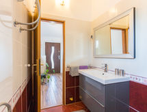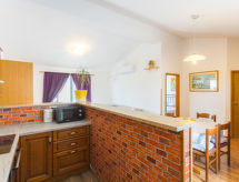 4 rom hus 80 m2 i 1st etasje. Stue/spisestue med, satelit-TV (flatskjerms TV), air-conditioning. Utgang til terrassen. 1 rom med, 1 dobbeltseng. 1 rom med 2 senger. 1 rom med, 1 dobbeltseng. Utgang til balkongen. Åpent kjøkken (4 kokeplater, ovn, oppvaskmaskin, mikrobølgeovn, elektrisk kaffemaskin). Bad/WC, dusj/WC, sep. WC. Varmluftsoppvarming. Balkong, terrasse. Terrassemøbler, liggestoler. Fasiliteter: strykejern, høy barnestol barneseng (ekstra). Internett (trådløs LAN [WLAN], gratis). Vennligst merk: røykfritt hus. Den har en terrasse. Den har en baby seng. Det er et privat basseng.- Kjennetegn ved boligen