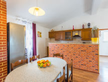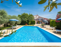 Enmannsbolig "Sandra (PRC612)". I det lille tettstedet Medvidići 2.5 km fra sentrum av Sveti Lovreč, 11 km fra sentrum av Poreč, 10 km fra sentrum av Vrsar, 10 km fra sjøen, i det grønne. Privat: tomt 600 m2, trær, svømmebasseng kantete (10 x 4 m, 45 m2, dybde 135 cm, Sesongåpent: 16.Mai. - 19.Sep.) med innebygde trapper. Terrasse, hagemøbler, grill (huske), Underholdning av bassenget av eieren/gartneren. I hbrukt: internetilkobbling, vaskemaskin. Parkering (for 3 biler) på tomten. Butikk 2.5 km, småstenstrand 10 km. Bakkeplan er avstengt og brukes ikke.Interior