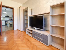 Savudrija 7 km fra Umag: Tomannsbolig "Santin". I en roligt, solrikt posisjon, 1 km fra sjøen, 1 km fra stranden. Fellesbruk: tomt 500 m2, hage med plen. Utendørs dusj, pergola (15 m2), hagemøbler, grill. I hbrukt: internetilkobbling. Parkering ved hbrukt på tomten. Butikk 1 km, restaurant 700 m, småstenstrand 1 km, strand ved klipper 1 km. Golfbane 2 km, tennis 8 km, rideskole 500 m, turstier fra hbrukt 200 m, sykkelvei 250 m. Attraksjoner i nærheten: aquapark 24 km. Det er mange muligheter som gir deg et omfattende tilbud for ridning.Interior