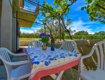 2 rom leilighet 50 m2, på bakkeplan. Stue/soverom med, 1 x 2 køysenger (80 cm, lengde 190 cm), TV (flatskjerms TV). 1 rom med, 1 dobbeltseng (160 cm, lengde 200 cm). Kjøkken (4 kokeplater, ovn, frys, elektrisk kaffemaskin) med, spisebord og air-conditioning. Dusj/bidé/WC. Fasiliteter: vaskemaskin (ekstra). Hårføner. Internett (trådløs LAN [WLAN], gratis). Vennligst merk: egen inngang. Den undertrykkende varmen kan legge stor belastning på kropp og sinn. Derfor er lokalene utstyrt med air condition. Det er en parkeringsplass. En vaskemaskin er tilgjengelig for bruk. En ovn er tilgjengelig.- fasiliteter