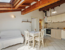 "Sara", 2 rom takleilighet 40 m2 i 2nd etasje. Enkelt og komfortabelt møbler: åpen stue/spisestue med, 1 sovesoffa, TV, flatskjerms TV og air-conditioning. 1 dobblet rom med, air-conditioning. Kjøkkenkrok (4 kokeplater, ovn, frys). Dusj/bidé/WC. Gassoppvarming. Oppvarming kun tilgjengelig fra 01.11. til 15.04. Fasiliteter: vaskemaskin. Internett (trådløs LAN [WLAN], gratis). Vennligst merk: leilighet vendt mot veien. Ingen heis. Fersk sengetøy tilgjengelig.- fasiliteter