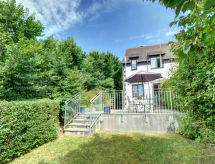 3 rom halvpart av tomannsbolig på 2 etasjer. Lys, komfortabelt og smakfullt møbler: stue/spisestue med, TV (flatskjerms TV), CD-spiller, stereoanlegg og DVD. Kjøkken (4 kokeplater, ovn, oppvaskmaskin, mikrobølgeovn, frys) med spisebord. Utgang til hagen. øverste etasje: (trapp uten gelender), 1 dobblet rom med, 1 dobbeltseng. 1 rom med 2 senger. Bad/dusj/WC. Oppvarming. Hage. Terrassemøbler. Utsikt av landskapet. Fasiliteter: vaskemaskin, tørketrommel, hårføner. Internett (trådløs LAN [WLAN], gratis). IPod-dockingstasjon. Vennligst merk: røykfritt hus. Bare TV EN. En veranda er til stede. Den har en DVD-spiller.- Kjennetegn ved boligen