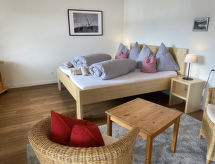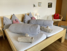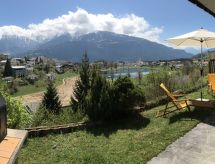 "Schumellins (LAA400)", 1 rom leilighet 35 m2, på bakkeplan, beliggenhet mot sør. Renovert i 2021, smakfullt og koseligt møbler: stue/soverom med, 1 dobbeltseng, spisebord og kabel-TV (flatskjerms TV). Utgang til terrassen. Åpent kjøkken (ovn, oppvaskmaskin, 2 keramiske kokeplater, elektrisk kaffemaskin, raclettegrill (chinoise, ost)). Dusj/WC. Oljeoppvarming. Terrasse. Terrassemøbler, grill, liggestoler (2). Vakker panoramautsikt av vannet, fjellene, landskapet og området. Fasiliteter: Internett (trådløs LAN [WLAN], ekstra). Parkeringsplass (overdekt) ved hbrukt. Vennligst merk: røykfritt hus. Max kjæledyr/små hunder tillatt 2 kjæledyr/små hunder tillatt. Egen inngang. En ferie godbit for mennesker og dyr. Dette er en hund og katt vennlig ferie innkvartering. En terrasse er tilgjengelig. Huset er også utstyrt med en overbygd parkeringsplass. En internettforbindelse er tilgjengelig.- fasiliteter