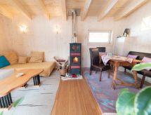 3 rom hytte 65 m2, i forhøyet bunnetasje. Koseligt og træ møblement møbler: 1 dobblet rom. 1 rom med 2 senger og 2 uttrekkbare senger (lengde 190 cm). Stue med, 1 dobbel sovesoffa, vedovn, spisebord og flatskjerms TV. Utgang til terrassen. Åpent kjøkken (4 kokeplater, ovn, oppvaskmaskin). Dusj/WC. Stor terrasse 20 m2, dekt, beliggenhet mot sør og beliggenhet mot vest. Terrassemøbler. Hærlig utsikt av landskapet. Fasiliteter: høy barnestol barneseng, hårføner. Internett (trådløs LAN [WLAN]). Vennligst merk: røykfritt hus. Røykvarsler. Den har en Internett-tilkobling.- fasiliteter