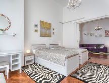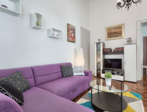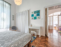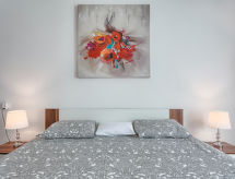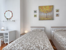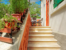 "Silvia", 3 rom leilighet 80 m2, i forhøyet bunnetasje. Vakkert og smakfullt møbler: stue med, satelit-TV (flatskjerms TV), air-conditioning. 1 rom med, 1 dobbeltseng (2 x 90 cm, lengde 200 cm). 1 rom med 2 senger (90 cm lengde 200 cm). Spisestue. Utgang til terrassen. Åpent kjøkken (ovn, 4 keramiske kokeplater, mikrobølgeovn, frys). Dusj/WC. Terrasse 5 m2, dekt. Terrassemøbler, grill (flyttbar). Utsikt av hagen. Fasiliteter: vaskemaskin, høy barnestol barneseng. Internett (trådløs LAN [WLAN], gratis). Vennligst merk: røykvarsler. Den har en terrasse.- fasiliteter