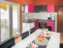 8 rom hus 167 m2 på 2 etasjer. Stue/spisestue med, satelit-TV og air-conditioning. Utgang til terrassen. 2 rom, hvert rom med, 1 dobbeltseng (160 cm, lengde 200 cm). Åpent kjøkken (ovn, oppvaskmaskin, 4 keramiske kokeplater, brødrister, vannkoker, mikrobølgeovn, frys, elektrisk kaffemaskin). Dusj/WC, sep. WC. øverste etasje: (utendørs trapp) stue med, satelit-TV og air-conditioning. 4 rom, hvert rom med, 1 dobbeltseng (160 cm, lengde 200 cm). Åpent kjøkken (ovn, oppvaskmaskin, 4 keramiske kokeplater, brødrister, vannkoker, mikrobølgeovn, frys, elektrisk kaffemaskin) med, spisebord og air-conditioning. Dusj/bidé/WC. Balkong, terrasse 25 m2, dekt. Terrassemøbler, balkongmøbler. Utsikt av havet. Fasiliteter: barneseng. Internett (trådløs LAN [WLAN], gratis). Ingen innvendig dør mellom etasjene. Dersom utleieobjektet blir bestilt for færre personer enn det som er maksimalt tillatt, vil en etasje ikke stå til rådighet. En dusj er til stedet. Bare shampooed raskt og dusjet og allerede kan starte en ny dag med ferie. Dessuten er de bortskjemt med en klar utsikt over havet. Takket være vaskemaskinen finner du mindre klær å bære. Det er en komfyr.- fasiliteter