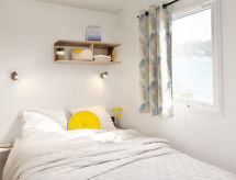 "4 persoons", 3 rom campingvogn 30 m2. Komfortabelt møbler: stue/spisestue med, spisebord og flatskjerms TV. Utgang til terrassen. 1 dobblet rom med, 1 dobbeltseng. 1 dobblet rom med 2 senger. Åpent kjøkken (4 gassbrennere, mikrobølgeovn, elektrisk kaffemaskin). Dusj, sep. WC. Oppvarming. Terrasse. Terrassemøbler. Parkeringsplass ved hbrukt. Vennligst merk: røykfritt hus. Max kjæledyr/små hunder tillatt 2 kjæledyr/små hunder tillatt. Røykvarsler. En restaurant er innlemmet i feriebransjen. Et innendørsbasseng er tilgjengelig. Den har et barnebasseng.- fasiliteter