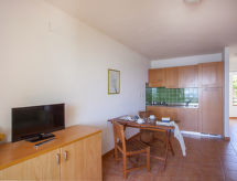 Residens "Sognu di Rena", med 3 etasjer. 9 hus i residensen. 250 leiligheter i residensen. 500 m fra sentrum av Moriani-Plage, 40 km fra sentrum av Bastia, 50 m fra stranden. Fellesbruk: tomt (inngjerdet), velholdt hage med plen og planter, 1 badebasseng inngjerdet (20 x 8 m, Sesongåpent: 01.Apr. - 30.Sep.). Barnebasseng, bordtennis, lekeplass. I anlegget: resepsjon, bar, trådløst LAN [WLAN], vaskemaskin (for felles bruk ekstra). Parkering (begrenset antall plasser) på tomten. Butikk, restaurant 50 m, sandstrand "Moriani-Plage" 50 m. Vennligst merk: bil anbefales. Bbildet er et eksempel. Feriehuset kan variere i stue, planløsning, utstyr og møbler.Interior