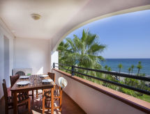 "Sognu di Rena (MNI154)", 3 rom leilighet 50 m2. Praktiskt møbler: stue/soverom med, 1 uttrekkbar seng (2 pers.), spisebord og TV. 1 rom med, 1 dobbeltseng. 1 rom med 2 senger. Åpent kjøkken (4 kokeplater, mikrobølgeovn). Dusj/WC. Oppvarming, airconditioning. Balkong, eller terrasse. Balkongmøbler. Utsikt av havet. Residence. Eiendommen er helt inngjerdet. For din velvære, nyt boblebadet i ferier. Vår lekeplass tilbyr rikelig med plass til romping og lek. Klimaanlegget sørger for god romtemperatur. Fordi den følelsesvennlige faktoren spiller en viktig rolle og er viktig for oss. Den har en balkong. Den har et barnebasseng. Den har et bordtennisbord.- Kjennetegn ved boligen