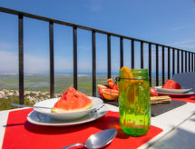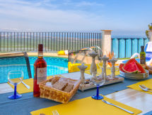 "Casa Sol y Monte", 4 rom hus 115 m2, i øverste etasje. Vakkert møbler: stue/spisestue med, åpen peis, satelit-TV, digital TV og vifte. Utgang til terrassen. 2 rom, hvert rom med 2 senger, air-conditioning og varmluft oppvarming. Åpent kjøkken (ovn, oppvaskmaskin, 4 keramiske kokeplater, mikrobølgeovn, frys). Bad/dusj/WC. I underetasje: (utendørs trapp), 1 rom, uten garderobeskap med, 1 dobbeltseng og dusj/WC. Liten terrasse 4 m2, stor terrasse 5 m2 delvis med tak, sitteplass i hagen 25 m2. Terrassemøbler, grill, liggestoler (4). Hærlig panoramautsikt av havet, fjellene, dalen og landskapet. Fasiliteter: vaskemaskin, strykejern, myggnett, høy barnestol barneseng. Internett (trådløs LAN [WLAN], gratis). Vennligst merk: røykfri bolig. AT-433085-A Overrasket med en fantastisk utsikt over havet. Passer til grill. Den har en brannpit. Det er et privat basseng. Du er mer selvstendig med den spesielle vaskemaskinen. En ovn er tilgjengelig.- fasiliteter