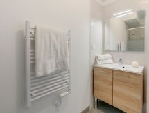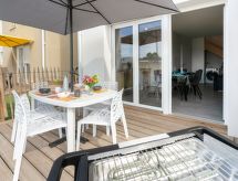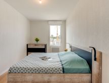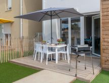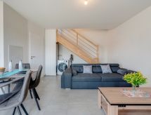 "Soleil Couchant B03", 3 rom leilighet i to etasjer 54 m2, på bakkeplan. Komfortabelt og moderne møbler: stue med, TV (flatskjerms TV). Kjøkken/stue (stekeovn, oppvaskmaskin, 2 keramiske kokeplater, mikrobølgeovn, elektrisk kaffemaskin) med spisebord, air-conditioning, vannkoker og motoriserte persienner. Utgang til terrassen. Dusj/WC. øverste etasje: 1 rom med, 1 dobbeltseng (1 x 140 cm, lengde 190 cm). 1 rom med, 1 x 1 køysenger (90 cm, lengde 190 cm), 1 dobbeltseng (1 x 140 cm, lengde 190 cm). Sep. WC. Terrasse 10 m2, beliggenhet mot sør og beliggenhet mot vest. Terrassemøbler, grill. Fasiliteter: vaskemaskin, strykejern. Internett (trådløs LAN [WLAN], ekstra). Parkeringsplass plass nr 26. Vennligst merk: røykfri bolig. 1 lite kjæledyr / liten hund tillatt. Røykvarsler. Tilbud fra en privatperson i henhold til art. 155, IV av CGI. Residence. For å holde det kult om sommeren, har dette feriehuset aircondition. Egnet for grilling. En oppvaskmaskin er tilgjengelig.- Kjennetegn ved boligen