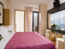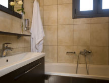 Moderne, fin villa "Solfez", med 3 etasjer, rekkehus, bygget i 2010. I området Schisma, i en roligt, solrikt posisjon, 550 m fra sjøen, 4.4 km fra stranden. Privat: vakker, velholdt hage m2 300 ha med blomster og trær, svømmebasseng kantete (24 m2, dybde 100- 180 cm dyp, Sesongåpent: 01.Jan. - 31.Des.). Grill. Sengetøyskift 3 ganger i uken. Håndkleskift 3 ganger i uken. Romrengjøring 3 ganger i uken. Parkering ved hbrukt. Daglivarehandel 4.8 km, supermarked 4.8 km, restaurant 4.8 km, bar 4.8 km, bakeri 4.8 km, café 4.8 km, småstenstrand "Chiona" 4.4 km. Golfbane(18 hull) 50 km. Attraksjoner i nærheten: Ferry to Spinalonga Islet 9.6 km, Archaeological Museum of Agios Nikolaos 10.8 km, Ferry to Chrissi Islet 44.9 km, Folklore Museum of Agios Nikolaos 10.4 km, Acqua Plus Waterpark 48.8 km. Vennligst merk: bil anbefales. Velegnet for barnefamilier. Eieren godtar ikke noen ungdomsgrupper. Det er flere lignende leiligheter i samme hus.Interior