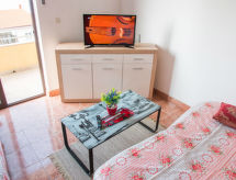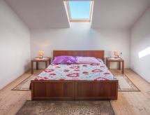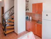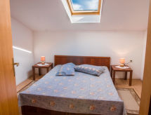 3 rom leilighet 70 m2 på 2 etasjer i 2nd etasje, beliggenhet mot sør. Stue/spisestue 20 m2 med, 2 sovesoffaer (100 cm, lengde 190 cm), satelit-TV (flatskjerms TV), air-conditioning. Utgang til balkongen. Åpent kjøkken (2 kokeplater, mikrobølgeovn, frys). Dusj/WC. Toppetasje: 2 rom med skråtak Lav dørhøyde 150 cm 230 cm med takvindu, hvert rom med, 1 dobbeltseng (160 cm, lengde 200 cm). Balkong 5 m2. Balkongmøbler. Hærlig utsikt av havet. Fasiliteter: Internett (trådløs LAN [WLAN], gratis). Kjæledyr / hund tillatt 1 kjæledyr / hund tillatt. En dusj er tilgjengelig, så ta deg tid til litt avslapning og forfriskning. Selv hennes hund er her en velkommen gjest, tross alt tilhører han familien. Utsikt over havet og beliggenheten er nydelig. Huset er også utstyrt med balkong. Det er en parkeringsplass.- fasiliteter