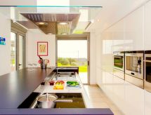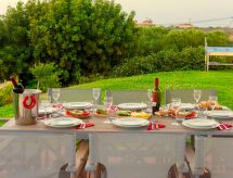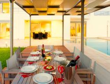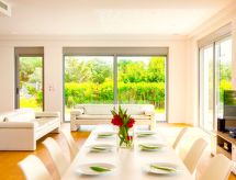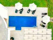Meget moderne, luksuriøs villa "Stella", med 2 etasjer, renovert i 2018. I en roligt, solrikt posisjon, 500 m fra sjøen, 500 m fra stranden, i det grønne. Privat: tomt 1'000 m2, vakker hage for avslappning, svømmebasseng (40 m2, Sesongåpent: 01.Apr. - 31.Okt.). Utendørs dusj, hagemøbler, grill. I hbrukt: sentralvarme. Sengetøyskift 2 ganger i uken. Håndkleskift 2 ganger i uken. Parkering ved hbrukt. Butikk 5 km, supermarked 5 km, restaurant 500 m, bakeri 5 km, café 500 m, sandstrand "Tersanas" 500 m. Vennligst merk: bil anbefales. Velegnet for barnefamilier, babyutstyr på forespørsel (inkl.).Interior