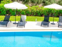 "Stella", 4 rom villa. Romlig og lys, meget moderne møbler: stue/spisestue med, spisebord og satelit-TV (flatskjerms TV), CD-spiller. Utgang til badebassenget. Stort kjøkken (ovn, oppvaskmaskin, 4 keramiske kokeplater, mikrobølgeovn, frys, elektrisk kaffemaskin). Utgang til hagen, til badebassenget. Sep. WC. øverste etasje: 2 dobbelt rom, hvert rom med, 1 dobbeltseng og air-conditioning. Utgang til balkongen. 1 dobblet rom med 2 senger, bad og air-conditioning. Utgang til balkongen. Bad. Liggestoler. Hærlig panoramautsikt av havet, fjellene og landskapet. Fasiliteter: vaskemaskin, tørketrommel, hårføner. Internett (trådløs LAN [WLAN], gratis). Merk: Dobbeltrom med 2 senger og 1 soverom med 1 dobbeltseng og de forbinder rom. Noen skap er til eget bruk og er derfor låst. 1069235 Et badekar er tilgjengelig. Med utsikt over havet. En balkong er tilgjengelig. Passer til grill. En barneseng er tilgjengelig. Den har et trådløst lokalnettverk (WLAN). En tørketrommel er tilgjengelig.- fasiliteter
