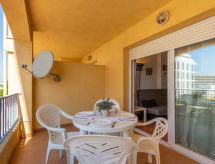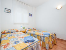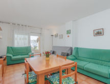 3 rom leilighet 60 m2. Romlig, komfortabelt og koseligt møbler: stue/spisestue med, spisebord og satelit-TV. Utgang til terrassen. 1 rom med, 1 dobbeltseng (135 cm, lengde 190 cm). 1 rom med 2 senger (80 cm lengde 190 cm). Kjøkken (4 keramiske kokeplater, brødrister, vannkoker, mikrobølgeovn, frys, elektrisk kaffemaskin). Bad/WC, dusj/WC. Oppvarmingsalternativ. Terrasse 9 m2. Terrassemøbler. Fasiliteter: vaskemaskin, strykejern, hårføner. Internett (trådløs LAN [WLAN], gratis). Garasje plass nr 17 - 2,40m x 5,20m. Vennligst merk: røykfri bolig. Bare TV ES, FR, DE. HUTG015605 Den har en overbygd parkeringsplass. Huset er også utstyrt med et basseng.- Kjennetegn ved boligen
