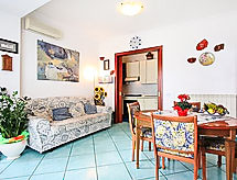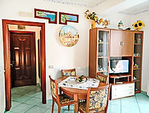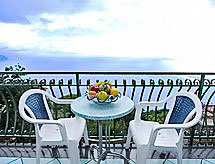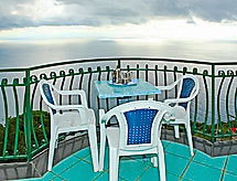 "Big Sunrise", 3 rom leilighet 70 m2, på bakkeplan. Lys, delvis renovert i 2015, praktiskt og komfortabelt møbler: stue/spisestue med, satelit-TV. Utgang til terrassen. 1 dobblet rom med, dusj/bidèt/WC. Utgang til terrassen. 1 rom med 3 senger. Utgang til terrassen. Kjøkken (4 kokeplater, ovn, frys). Bad/bidé/WC. Airconditioning, varmluftsoppvarming (ekstra). Oppvarming kun tilgjengelig fra 01.11. til 31.03. Terrasse 50 m2, liten hage. Terrassemøbler, liggestoler. Hærlig panoramautsikt av havet. Fasiliteter: vaskemaskin. Internett (trådløs LAN [WLAN], gratis). Velegnet for familier. Overrasket med en fantastisk utsikt over havet. Kom inn og føl deg den forfriskende brisen i klimaanlegget. Takket være vaskemaskinen finner du mindre klær å bære. Ved rengjøring.- Aktiviteter i nærheten