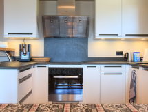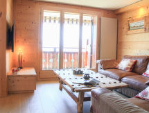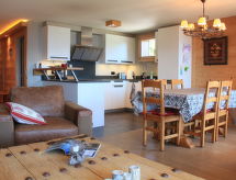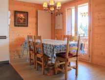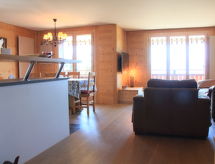 "Sunset A 4", 3 rom leilighet 76 m2 i 1st etasje, beliggenhet mot sør-vest. Renovert, komfortabelt og smakfullt møbler: stue/spisestue med, åpen peis, spisebord og TV (flatskjerms TV). Utgang til balkongen, beliggenhet mot sør-vest. 1 rom med, 1 dobbeltseng (2 x 90 cm), bad/WC og TV (flatskjerms TV). 1 rom med, 1 x 2 køysenger (90 cm), TV (flatskjerms TV). Åpent kjøkken (stekeovn, oppvaskmaskin, 4 induksjonskomfyr, elektrisk kaffemaskin, Internet(La Semeuse), ekstra, raclettegrill (ost)). Dusj/WC. Balkong 11 m2, beliggenhet mot sør-vest. Balkongmøbler. Meget vakker utsikt av fjellene. Garasje plass nr 15 (1 Bil). Vennligst merk: røykfri bolig. En balkong er tilgjengelig. Hvis været ikke spiller, er det også en TV. En tørketrommel er tilgjengelig. Ved rengjøring.- Kjennetegn ved boligen