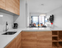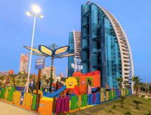 Playa Poniente: Meget moderne leilighetshus "Sunset waves", bygget i 2021. I området 400 m fra sentrum av Benisorm, i en solrikt posisjon, 200 m fra sjøen, 200 m fra stranden. Fellesbruk: stor hage i flere nivåer med plen og trær, 1 badebasseng (15 x 25 m, dybde 50- 200 cm dyp, Sesongåpent: 01.Jan. - 31.Des.). Formet basseng. Dusj/WC ved bassenget, lekeplass. I hbrukt: heis. Parkering på tomten. Supermarked, bar, bussholdeplass 300 m. Attraksjoner i nærheten: Aqualandia 6 km, Mundomar 6 km, Terra Mitica 4 km, Terra Natura 4 km, Alicante 45 km, Aeropuerto Alicante 58 km. Grupper med tenåringer- bare ved forespørsel. Stille og rolig område. Stillhet og god oppførsel. Nyt spennende tilbud i fornøyelsesparken. En god dose moro er definitivt uunngåelig!Interior