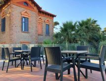 "Superior Apartment", 1 rom leilighet 25 m2 i 1st etasje. Romlig og lys, komfortabelt og vakkert møbler: åpen stue/soverom med, 1 sovesoffa, 1 dobbeltseng og TV (flatskjerms TV). Utgang til terrassen. Lite kjøkkenkrok (2 keramiske kokeplater, elektrisk kaffemaskin) med liten spisebord. Dusj/WC. Airconditioning. Terrasse. Vakker utsikt av svømmebassenget og hagen. Fasiliteter: safe, strykejern, hårføner. Vennligst merk: røykfritt hus. 0310K032A0106800 Residence. For henvendelser om besøket til eiendommen ber vi deg kontakte resepsjonen. Nyt frokosten din i den vedlagte restauranten. Vi ser frem til å tilby deg frokost i ferien. Den undertrykkende varmen kan legge stor belastning på kropp og sinn. Derfor er lokalene utstyrt med air condition. Ved rengjøring.- Kjennetegn ved boligen