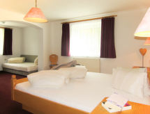 "Tauferer (SOE600)", 6 rom leilighet 148 m2 på 2 etasjer. Smakfullt møbler: øverste etasje: 1 rom med 1 seng, 1 dobbeltseng, dusj/WC og kabel-TV. 1 rom med, 1 dobbeltseng, dusj/WC og kabel-TV. Utgang til balkongen. øverste etasje: stue/spisestue med skråtak med takvindu med, spisebord, kabel-TV og radio. 1 rom med, 1 dobbeltseng, dusj/WC og kabel-TV. Utgang til balkongen. 1 dobblet rom med, 1 dobbeltseng, dusj/WC og kabel-TV. 1 dobblet rom med, 1 dobbeltseng, dusj/WC og kabel-TV. Utgang til balkongen. Kjøkken (ovn, oppvaskmaskin, 4 keramiske kokeplater, brødrister, vannkoker, mikrobølgeovn, elektrisk kaffemaskin) med spisebord. Sep. WC. Oljeoppvarming. Teppe. Balkong, beliggenhet mot sør. Vakker utsikt av området og Nederkogl. Fasiliteter: safe, barneseng for barn opp til 2 år (ekstra). Internett (trådløs LAN [WLAN], gratis). Det er en balkong. Hvis været ikke spiller, er det også en TV.- fasiliteter