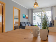 3 rom leilighet 55 m2 i 1st etasje. Moderne og smakfullt møbler: stue/spisestue med, digital TV, flatskjerms TV, air-conditioning og varmluft oppvarming. Utgang til balkongen. 1 rom med, 1 dobbeltseng. 1 rom med 1 seng og 1 x 2 køysenger. Kjøkken (4 keramiske kokeplater, mikrobølgeovn, elektrisk kaffemaskin). Dusj/WC. Balkong. Balkongmøbler. Delvis utsikt av havet. Fasiliteter: vaskemaskin, strykejern, hårføner. Internett (trådløs LAN [WLAN], gratis). HUTT005454- fasiliteter