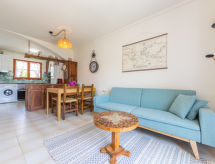 "Terra Alta", 4 rom rekkehus 67 m2. Passer for 2 voksne + 2 barn. Praktiskt og koseligt møbler: stue/spisestue. Utgang til sitteplass i hagen. Åpent kjøkken (4 kokeplater, brødrister, vannkoker, mikrobølgeovn, elektrisk kaffemaskin, Internet(Nespresso), ekstra). Oppvarmingsalternativ. øverste etasje: 1 dobblet rom med, 1 dobbeltseng (1 x 140 cm, lengde 190 cm). 1 rom med, 1 uttrekkbar seng (2 pers. 2 x 90 cm, lengde 190 cm). Bad/WC. øverste etasje: galleri med, digital TV. Utgang til terrassen. Sitteplass i hagen. Utsikt av svømmebassenget og hagen. Fasiliteter: vaskemaskin, strykejern, hårføner. Internett (trådløs LAN [WLAN], gratis). Vennligst merk: velegnet for familier. Røykfritt hus. Bare TV ES. HUTT-062695 Den har en terrasse. Den har en veranda.- fasiliteter