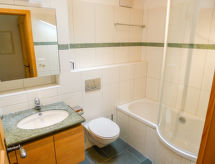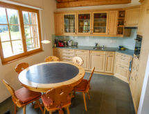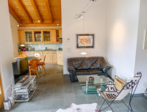 3 rom leilighet 75 m2, i toppetasjen. Passer for 2 voksne + 2 barn. Komfortabelt og rustikt møbler: stue/spisestue med, kabel-TV (flatskjerms TV), DVD. Utgang til balkongen. 1 dobblet rom. 1 rom med, 1 x 2 køysenger. Åpent kjøkken (ovn, oppvaskmaskin, 4 keramiske kokeplater, brødrister, vannkoker, frys, elektrisk kaffemaskin, Internet(Nespresso), ekstra, raclettegrill (ost)) med spisebord. Bad/WC. Balkong 8 m2, beliggenhet mot sør. Balkongmøbler. Vakker panoramautsikt av fjellene og landskapet. Fasiliteter: strykejern, hårføner. Internett (trådløs LAN [WLAN], gratis). Garasje (1 Bil) ved hbrukt. Vennligst merk: røykfri bolig. Kjæledyr / hund tillatt 1 kjæledyr / hund tillatt. En tørketrommel er tilgjengelig. Huset er også utstyrt med en ovn.- fasiliteter
