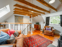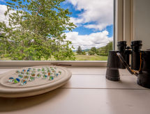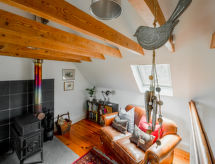 "The Bothy Annex", 2 rom hytte på 2 etasjer. Fullstendig renovert i 2012, smakfullt og koseligt møbler: 1 dobblet rom med, 1 dobbeltseng. Dusj/WC. øverste etasje: åpen stue med, vedovn. Åpent kjøkken (ovn, oppvaskmaskin, 4 induksjonskomfyr, mikrobølgeovn, frys) med spisebord. Stor sitteplass i hagen. Terrassemøbler, grill. Vakker utsikt av landskapet. Fasiliteter: vaskemaskin. Internett (trådløs LAN [WLAN], gratis). Parkeringsplass ved hbrukt. Vennligst merk: røykfritt hus. Bare TV EN. Passer til grill. Det er en brannkasse. Den har en komfyr.- fasiliteter