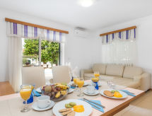 "Tomislav 2", 2 rom leilighet 48 m2, på bakkeplan. Moderne og koseligt møbler: stue/spisestue 30 m2 med, 1 dobbel sovesoffa (145 cm, lengde 195 cm), satelit-TV og air-conditioning. Utgang til terrassen, til badebassenget. 1 rom med, 1 dobbeltseng (160 cm, lengde 200 cm). Utgang til terrassen. Åpent kjøkken (4 kokeplater, mikrobølgeovn, frys). Dusj/WC. Terrasse 12 m2, dekt. Terrassemøbler. Utsikt av svømmebassenget. Fasiliteter: safe. Internett (trådløs LAN [WLAN], gratis). Parkeringsplass. Med inngjerdet tomt. Et basseng er tilgjengelig. Et oppvarmet basseng er tilgjengelig. Den har et barnebasseng.- fasiliteter