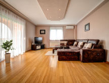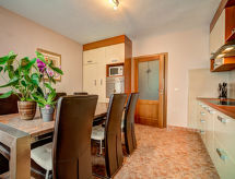 3 rom leilighet 130 m2, i forhøyet bunnetasje. Vakkert og smakfullt møbler: stue med, satelit-TV (flatskjerms TV), air-conditioning. Utgang til terrassen. 2 rom, hvert rom med, 1 dobbeltseng (2 x 90 cm, lengde 200 cm). Utgang til terrassen. Spisestue. Utgang til terrassen. Åpent kjøkken (ovn, oppvaskmaskin, 4 keramiske kokeplater, mikrobølgeovn, frys, elektrisk kaffemaskin). Sep. WC, bad/dusj/bidé/WC, dobbel servant, boblebad. Oppvarming (ekstra). Terrasse 25 m2, dekt, terrasse 16 m2, med tak. Terrassemøbler. Delvis god utsikt av havet. Fasiliteter: Internett (trådløs LAN [WLAN], gratis). Vennligst merk: brannslukkningsapparat. Med inngjerdet tomt. For ditt velvære, nyt boblebadet i ferien. Kom inn og føl deg den forfriskende brisen i klimaanlegget. Egnet for grilling. Huset er også utstyrt med internettforbindelse.- Aktiviteter i nærheten