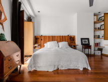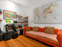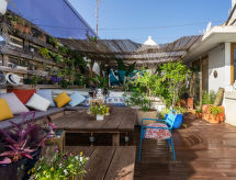 Meget komfortabel rekkehus "Triana - Panoramic View Sevilla", med 5 etasjer. I sentrum av Sevilla, i en sentrale, travelt, solrikt posisjon, direkte ved elven. Privat: badebasseng (over bakken) (3 x 3 m, dybde 100 cm, Sesongåpent: 01.Jun. - 30.Sep.). I hbrukt: heis, sentralvarme, airconditioning, alarm. Overdekket, parkering (for 2 biler) ved hbrukt. Supermarked 300 m, restaurant, bar, café 50 m, T-banestasjon "Plaza de Cuba" 750 m. Attraksjoner i nærheten: Plaza de Toros 800 m, Torre del Oro 800 m, Catedral de Sevilla 1 km, Plaza de España 1.5 km. Eieren godtar ikke noen ungdomsgrupper. Stille og rolig område. Stillhet og god oppførsel.Interior
