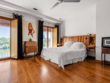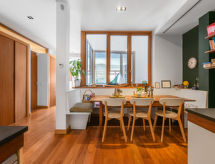 "Triana", 8 rom rekkehus 500 m2 på 5 etasjer. Passer for 8 voksne + 2 barn. Komfortabelt og smakfullt møbler: stor inngang. Kontor. I underetasje: stue. 2 rom, hvert rom med 1 seng (80 cm lengde 190 cm). Lite kjøkken (stekeovn, 2 keramiske kokeplater, brødrister, mikrobølgeovn, elektrisk kaffemaskin). Dusj/WC. øverste etasje: stor stue/spisestue med, åpen peis, spisebord, bibliotek, digital TV og flatskjerms TV. Utgang til balkongen. Liten lekerom. Åpent kjøkken (stekeovn, oppvaskmaskin, 4 keramiske kokeplater, brødrister, vannkoker, mikrobølgeovn, frys, elektrisk kaffemaskin) med spisebord. Dusj/WC. øverste etasje: 1 stort rom med, 1 dobbeltseng (200 cm, lengde 200 cm), bad/dusj/WC. Utgang til balkongen. 2 rom, hvert rom med, 1 uttrekkbar seng (2 x 100 cm, lengde 200 cm). Dusj/WC. øverste etasje: 1 rom med, 1 dobbeltseng (135 cm, lengde 190 cm). Utgang til terrassen. Dusj/WC. 9 små balkonger, stor terrasse 70 m2. Terrassemøbler, grill. Hærlig utsikt av området og elven. Fasiliteter: vaskemaskin, strykejern, høy barnestol barneseng for barn opp til 2 år, hårføner. Internett (trådløs LAN [WLAN], gratis). Garasje (2 Biler) ved hbrukt. Vennligst merk: røykfritt hus. Kjæledyr / hund tillatt 1 kjæledyr / hund tillatt. Egen inngang. VFT/SE/09563 Objekt har en heis. Passer til grill. Det er en overbygd parkeringsplass. Et privat basseng er tilgjengelig. Et trådløst LAN (trådløst lokalnettverk) er tilgjengelig.- Kjennetegn ved boligen