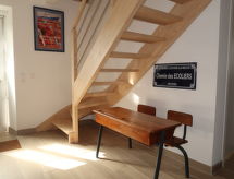 "Ty Bihan", 4 rom hus 75 m2 på 2 etasjer. Vakkert møbler: åpen stue/spisestue med, åpen peis, spisehjørne og TV (flatskjerms TV), DVD. Utgang til hagen. Åpent kjøkken (ovn, oppvaskmaskin, 3 keramiske kokeplater, brødrister, vannkoker, mikrobølgeovn, frys, elektrisk kaffemaskin, Internet(Nespresso), ekstra, raclettegrill). Dusj/WC. El-oppvarming. øverste etasje: 1 rom med, 1 dobbeltseng (160 cm, lengde 200 cm). 1 rom med, 1 dobbeltseng (140 cm, lengde 190 cm). 1 rom med, 1 x 2 køysenger (90 cm, lengde 190 cm). Parkett. Terrassemøbler, grill, liggestoler (2). Fasiliteter: vaskemaskin, strykejern, høy barnestol barneseng for barn opp til 2 år, hårføner. Internett (trådløs LAN [WLAN]). Vennligst merk: røykfritt hus. Røykvarsler. Takket være vaskemaskinen finner du mindre klær å bære. En DVD-spiller er tilgjengelig. Det er en mikrobølgeovn tilgjengelig.- fasiliteter