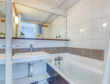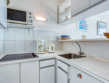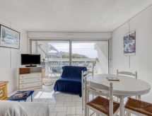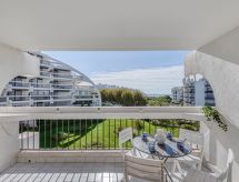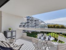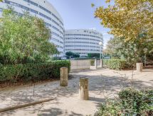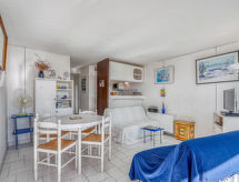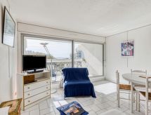 2 rom leilighet 35 m2 i 2nd etasje. Praktiskt og vakkert møbler: stue/spisestue med, 1 dobbel sovesoffa (1 x 140 cm, lengde 190 cm). 1 rom med, 1 dobbeltseng (140 cm, lengde 190 cm). Kjøkkenkrok (4 keramiske kokeplater, brødrister, vannkoker, mikrobølgeovn, elektrisk kaffemaskin). Bad, sep. WC. Terrasse 8 m2, beliggenhet mot sør. Terrassemøbler, liggestoler (2). Meget vakker panoramautsikt av havet og hagen. Fasiliteter: vaskemaskin, strykejern. Parkeringsplass plass nr 414. Vennligst merk: røykfri bolig. Røykvarsler. Residence. Et badekar er tilgjengelig. Ferieboligen har en passasjerheis.- Kjennetegn ved boligen