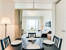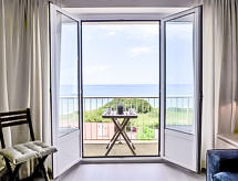 1 rom etromsleilighet 25 m2 i 3rd etasje. Komfortabelt og vakkert møbler: stue/spisestue med, 1 sovesoffa (160 cm, lengde 190 cm), TV (flatskjerms TV). Utgang til balkongen. Lite kjøkken (4 kokeplater, brødrister, vannkoker, mikrobølgeovn, elektrisk kaffemaskin). Dusj/WC. El-oppvarming. Balkong. Balkongmøbler. Meget vakker utsikt av fjellene og sjøen. Fasiliteter: strykejern, hårføner. Internett (trådløs LAN [WLAN], ekstra). Parkeringsplass plass nr 7. Vennligst merk: røykfri bolig. Røykvarsler, brannslukkningsapparat. 64125000291D1 Residence.- Kjennetegn ved boligen