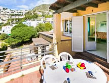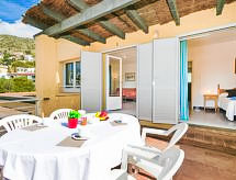 Canyelles Petites: Koselig, enkel resort "Velazquez". Canyelles Petites, i området 4 km fra sentrum av Roses, i en roligt, solrikt posisjon ved en høyde, 60 m fra sjøen, 60 m fra stranden, vei å krysse. Fellesbruk: 1 badebasseng firkantet (10 x 4 m, dybde 80- 180 cm dyp, Sesongåpent: 12.Mai. - 30.Sep.) med innbygdetrapper. I hbrukt: trådløst LAN [WLAN]. Butikk, daglivarehandel, supermarked 150 m, restaurant 100 m, bar, café 20 m, område bare for gående 30 m, bussholdeplass 100 m, sandstrand "Canyelles Petites", badebukt 60 m. Sporthavn 3 km, golfbane 20 km, tennis 5 km, rideskole 10 km. Attraksjoner i nærheten: Parque Acuático Aquabrava Roses 6 km, Skydive y túnel del viento Empuriabrava 11 km, Cadaqués 18 km, Castillo y casino de Perelada 25 km, Monasterio de Sant Pere de Rodes 24 km, Museo Dalí Figueres 24 km. Vennligst merk: Det er flere lignende leiligheter i samme hus. The apartments are built on terraced land and set on a hillside. The apartments have access to the network of terraces. Access to the individual apartments and the swimming pool down some steps. The apartments are situated 200 m from the Canyelles Petites beach, one of the most beautiful beaches in Roses. Please note: the residence is mainly occupied by families. The residence requests no noise after 2300 hrs. Pease note : apartments without heating.Interior