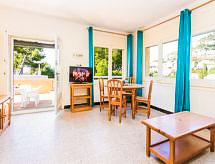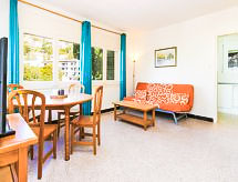 3 rom leilighet 60 m2. Lys, praktiskt møbler: stue/spisestue med, 1 dobbel sovesoffa, satelit-TV og digital TV (flatskjerms TV). Utgang til terrassen. 1 rom med 2 senger (90 cm). 1 rom med, 1 dobbeltseng (150 cm). Utgang til terrassen. Kjøkken (4 keramiske kokeplater, brødrister, mikrobølgeovn, frys, elektrisk kaffemaskin). Dusj/WC. Oppvarmingsalternativ. Terrasse 30 m2. Terrassemøbler. Fasiliteter: vaskemaskin. Internett (trådløs LAN [WLAN], gratis). Garasje plass nr 1. Vennligst merk: parkeringsplass bare for små biler. Bare TV ES, DE. HUTG007514- fasiliteter