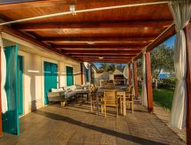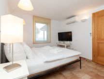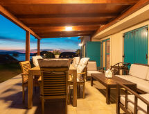 4 rom hus 105 m2 på 2 etasjer. Smakfullt og koseligt møbler: stue/spisestue 28 m2 med, 1 dobbel sovesoffa (160 cm, lengde 200 cm), satelit-TV og air-conditioning. Utgang til terrassen. 1 rom 18 m2 med, 1 dobbeltseng (160 cm, lengde 200 cm), bad/WC, satelit-TV og air-conditioning. Åpent kjøkken (ovn, oppvaskmaskin, 4 keramiske kokeplater, brødrister, vannkoker, mikrobølgeovn, frys, elektrisk kaffemaskin) med, air-conditioning. Utgang til hagen. Dusj/WC. Toppetasje: 2 rom 17 m2, med skråtak Lav dørhøyde 110 cm 245 cm med takvindu, hvert rom med 2 senger (90 cm lengde 200 cm), dusj/WC og air-conditioning. Varmluftsoppvarming. Terrasse 35 m2, dekt. Terrassemøbler. Meget vakker panoramautsikt av havet. Fasiliteter: safe, strykejern, myggnett, høy barnestol barneseng. Internett (trådløs LAN [WLAN], gratis). Vennligst merk: røykfritt hus. I første etasje (separat, ekstern inngang): dusj/WC. Med inngjerdet tomt. Ferieeiendom inkludert hage å slappe av. En veranda er tilgjengelig. Huset er også utstyrt med parkeringsplass. Det er et privat basseng. Et oppvarmet basseng er tilgjengelig. Finn ut om det eksisterende TV-apparatet. Om lokale nyheter eller internasjonale nyheter, med fjernsynet er du alltid godt informert.- Kjennetegn ved boligen