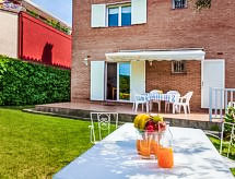 "Villa Esther", 5 rom hus 145 m2 på 2 etasjer. Lys, praktiskt og koseligt møbler: stue/spisestue med, digital TV. Utgang til terrassen. 1 dobblet rom med 2 senger (90 cm lengde 190 cm). Kjøkken (4 kokeplater, stekeovn, oppvaskmaskin, brødrister, vannkoker, mikrobølgeovn, frys, elektrisk kaffemaskin). Dusj/WC. øverste etasje: 1 rom med 2 senger (90 cm lengde 190 cm). 1 rom med, 1 dobbeltseng (150 cm, lengde 190 cm), dusj/bidèt/WC. Utgang til terrassen. 1 rom med, 1 dobbeltseng (150 cm, lengde 190 cm). Bad/bidé/WC. Oppvarming. Vakker utsikt av landskapet og området. Fasiliteter: vaskemaskin. Internett (trådløs LAN [WLAN], gratis). Vennligst merk: røykfritt hus. Bare TV ES. HUTG-027950 Den har en baby seng. Det har et privat basseng.- Kjennetegn ved boligen
