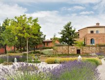 Meget fin, komfortabel residens "Cignella Resort", omgitt av trær, jorder og vingårder. 13 leiligheter i residensen. 3 km fra sentrum av Trequanda, i en avskildt, solrikt, høyt posisjon, i det grønne. Fellesbruk: tomt (inngjerdet), stor hage planter og trær, 1 badebasseng inngjerdet (10 x 12 m, Sesongåpent: 01.Mai. - 15.Okt. bassengets åpningstider: 08:00-19:00) med innbygdetrapper. Barnebasseng, utendørs dusj, sitteplass, pergola, terrasse, hagemøbler, grill, Underholdning av bassenget av eieren/gartneren. I hbrukt: resepsjon, frokostrom, oppholdsrom, massasje (ekstra). Sengetøyskift 1 ukentlig. Håndkleskift 1 ukentlig. Romrengjøring på forespørsel (ekstra). Frokost muligt (ekstra). Flyplasstransporten (ekstra). 1 km lang ujevn Tilgang med bil hele veien. Parkering på tomten. Butikk 3 km, daglivarehandel 3 km, supermarked 10 km, kjøpesenter 10 km, restaurant 3.5 km, bussholdeplass 1.5 km, togstasjon "Foiano della Chiana" 22 km, termalbad "Rapolano Terme" 30 km, badevann "Trasimeno" 30 km. Golfbane(9 hull) 17 km. Attraksjoner i nærheten: Pienza 13 km, Montepulciano 14 km, Montalcino 32 km, Cortona 39 km, Arezzo 48 km, Siena 49 km. Velkjente innsjøer: Trasimeno 30 km, Chiusi 35 km. Vennligst merk: resepsjonen åpen 09:00-18:00 tider. Velegnet for barnefamilier, babyutstyr (inkl.), barnevakt (ekstra). Egnet for arrangementer. På forespørsel: transporten flyplass- ferieområdet. Vennligst merk: Av- og pålastning av bagasje er mulig ved feriebol. 24-timers overvåking. Bygning med elektriske portener. Alle hus/leiligheter er individuellt inredde. I tillegg til den fysiske effekten, er massasje også balsam for sjelen. Massasjer kan bestilles på stedet.Interior
